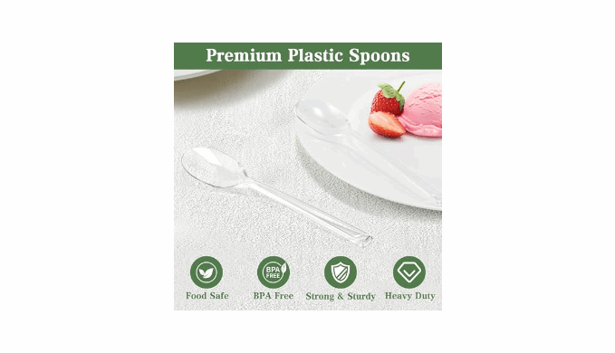 【Eco-Conscious & Heat-Resistant Safe】Crafted from BPA-free materials that resist heat up to 158°F, these disposable spoons ensure your food stays safe without compromising safety or quality. The clear plastic spoons are also recyclable, offering an eco-friendlier choice for conscious consumers.Ideal for hot dishes at picnics and catering events, they are a responsible choice for both yourself and the planet