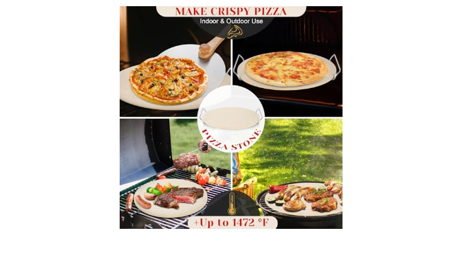 【Pizza Stone for Oven and Grill】Funnydin pizza stone is crafted from high-quality cordierite stone, ensuring exceptional durability and heat resistance. Capable of withstanding intense heat up to 1472°F(800°C), it is perfect for both oven and grill use. Full of invisible micro-pores, this baking stone absorbs moisture and heats evenly, creating pizzas with an authentically crispy base