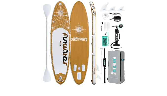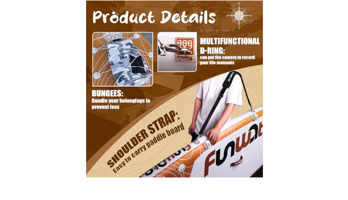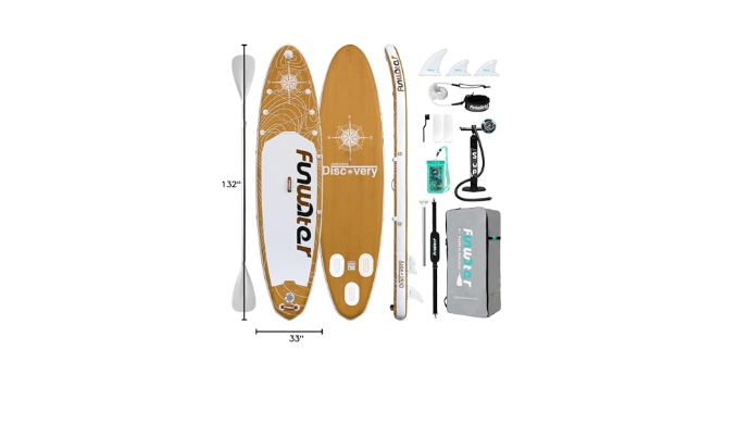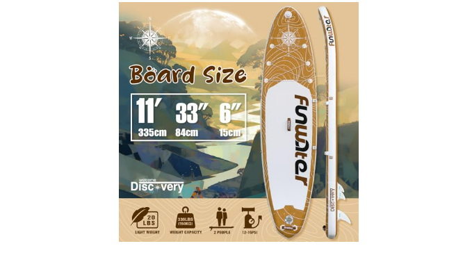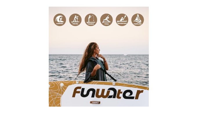 FunWater paddleboard is made of the new ultra-light military-grade PVC material, which is 35% lighter than regular materials. It is designed to operate in rivers, lakes, seas, and various waters, as well as for people with different experience levels.