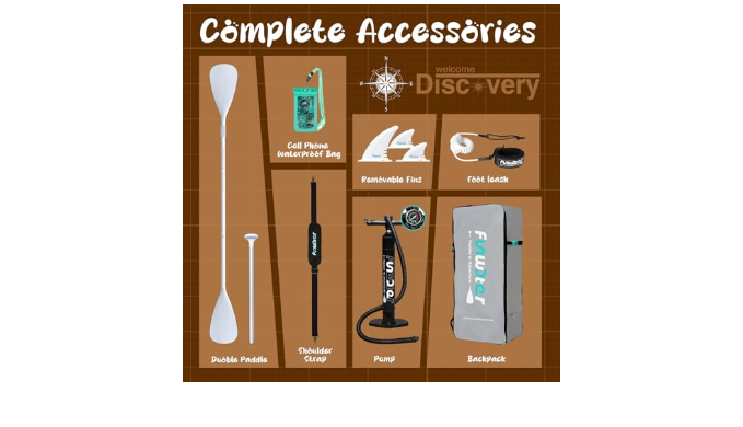 The Package Including:1 inflatable paddle board, 3-piece length adjustable floating paddle ,3 fins , 1 SUP pump, 1 backpack , 1 waterproof phone bag, 1 leash ,1 shoulder strap
