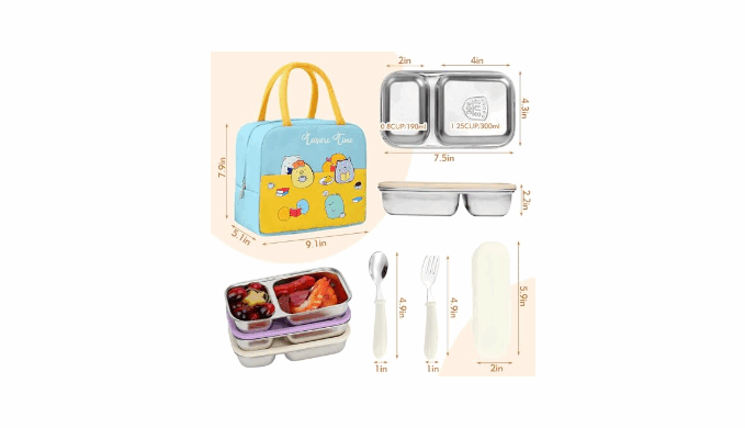 What You Get: 3 × snack containers, 1 × fork, 1 × spoon, 1 × thermal bag, reasonable combination, so you can pick up and go anytime, anywhere. This is a great gift. I believe that the person who receives this gift will be very surprised. And these grab and go snack containers are safe for the dishwasher, fridge, and oven, making cleaning hassle-free (Not microwave-safe)