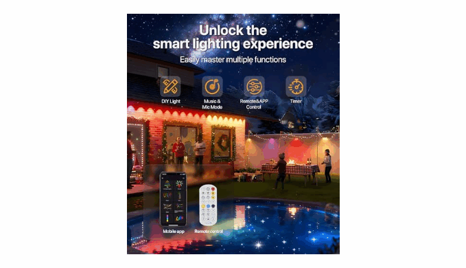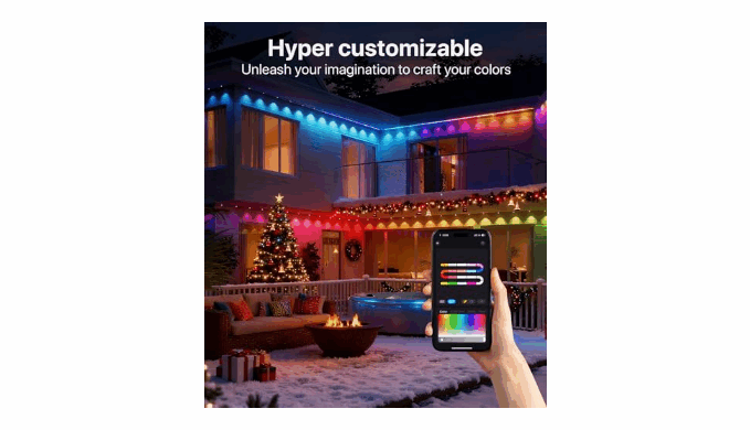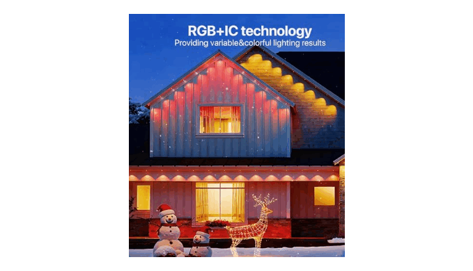 Smart Dynamic Lighting & Holiday Atmosphere: RGB+IC technology enables smooth gradient/segement color control, each light can display different color. The light offer 72 different scene modes, you can easily switch to the pre-set scene lighting, such as Christmas and Halloween or daily decor