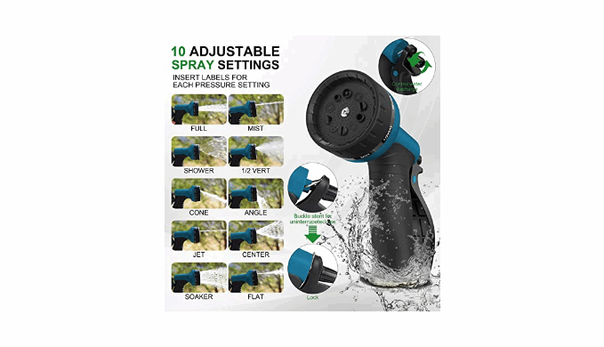 【10-Function Spray Nozzle for Versatile Use】Switch between jet, mist, shower, and 7 other spray patterns to handle any task—perfect for watering delicate plants, power-washing patios, or rinsing your car with precision.