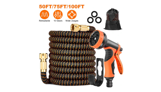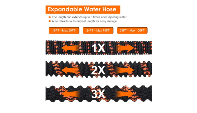 - Expandable Water Hose: Made of premium TPE, our water hoses can be extended separately into 50FT/75FT/100FT, which makes watering more convenient and takes care of plants from a distance. The aluminum alloy connectors at the ends of the hose also provide much convenience for us.