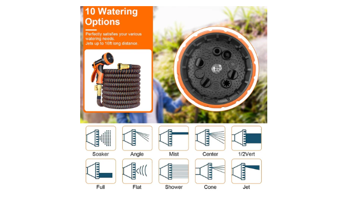 - 10 Watering Options: Featured with 10 gears(Full, Flat, Shower, Cone, Jet, Soaker, Angle, 1/2Vert, Center, Mist), our garden sprayer can perfectly satisfy your watering needs. A must-have tool for gardening lovers!