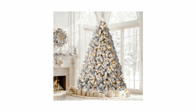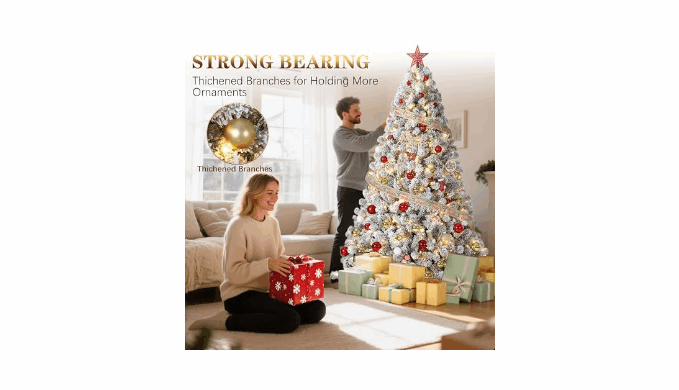 Magical Snowy Appearance: Transform your home into a winter wonderland with thE artificial Christmas tree. Lush branch tips covered in white flocking deliver a stunning green and snowy look-perfect for cozy holiday gatherings or festive indoor Christmas decor