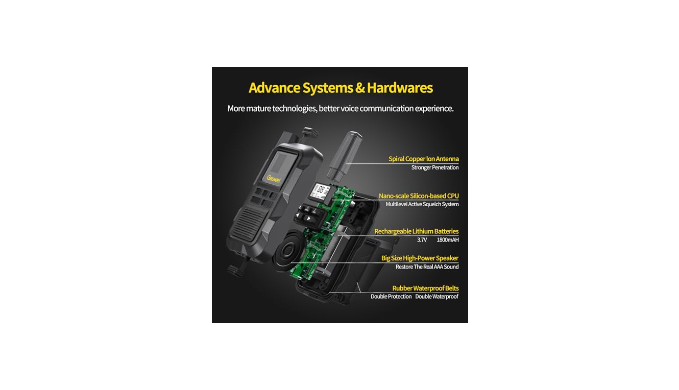 What\'s in the box? Two G2pro walkie-talkies with two-way radios, two lithium polymer batteries (included in the product), one USB-C charging cable, user guide.