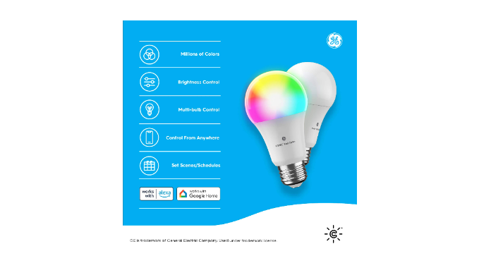 The GE Cync Smart Bulb Color Changing Lights make it easy to enhance your room light or to celebrate the holidays. Use millions of colors to decorate for each holiday, create the perfect party vibe, and support your team on game day with each Cync light bulb. Find the right aesthetic décor for your gaming room, improve your LED work light, or use our LED floodlight bulbs as bedroom lights. These indoor light bulbs feature a tunable white spectrum, allowing you to get the perfect hue that highlights your home’s landscaping and architecture. Get additional confidence by scheduling your CYNC lights to turn on so that you improve home security and never come home to a dark house. With voice control and the ability to control your lights away from home, you’ll get the added convenience of controlling each WiFi bulb while you’re away on vacation or when your hands are full. Our colored light bulbs pair easily with Amazon Alexa and Google Assistant smart home devices (sold separately).