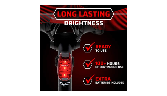 3 Lighting Modes + Easy-to-Use: Preinstalled with batteries for immediate use! These lights clip on easily and stay on securely. With one simple push of a button, you have instant illumination with 3 useful lighting modes [Steady, Flash, and Strobe].
