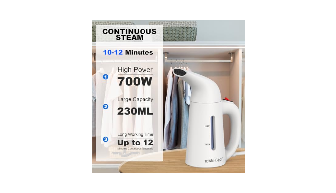 Efficiency: With rapid heating and continuous steam flow, the Mini Steamer quickly smooths out wrinkles with minimal effort. Get your clothes looking fresh and neat in minutes, without the hassle of setting up an ironing station.
