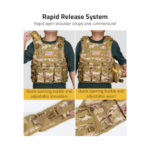 Rapid Release System: The tactical vest is equipped with a quick-release system at the shoulders and waist, making it easy and convenient to put on and take off. Simply pull the plastic buckles to instantly loosen straps and remove the vest