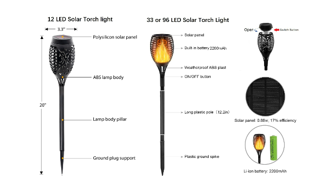 About The 96 LED Solar Torches Lights Product