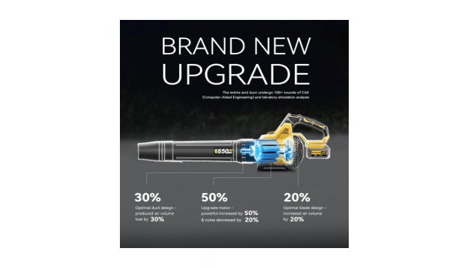 Exceptional Blowing Performance: Our Leaf Blower adopts advanced turbo technology and axial fan design to maximize airflow output. It delivers an impressive air volume of up to 650CFM with the tapered nozzle, ensuring the Leaf Blower Cordless is highly effective for clearing large piles of leaves and debris.