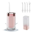 3:4 frequency conversion modes,5 Replacement sprinkler. The modes include soft, standard, strong and burst modes, 0.6MM focused water column, high-frequency pulses up to 1200 times per minute can easily and powerfully remove 99.99% of food residue between the teeth, and the product is equipped with four nozzles to meet the tongue coating. Orthodontics, periodontal pockets and other oral and nasal care needs will help you keep your teeth healthy and clean, and smile confidently.