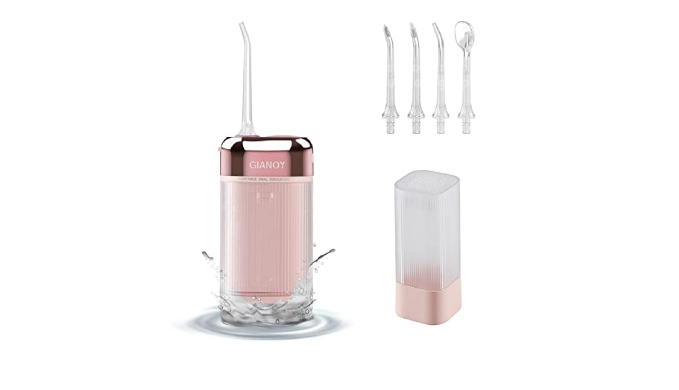 1:Portable Design for home or travel:GIANOY portable water flosser, Mini size, pull-out design, foldable, save more space. Equipped with storage box and charging cable, easy to store and carry, very suitable for home use and travel