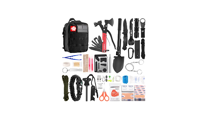 【Upgraded Professional Survival Gear Equipment】DOZAVI emergency survival kit Uniquely customized by U.S military veterans. Our survival kit includes 20pcs multipurpose survival tools and also offers a 108 pcs first aid kit, and a 14 pcs fishing tools set which can meet your different needs and provide the safest and comprehensive protection for any outdoor activities like camping, hiking, car travel, climbing, boating, etc.