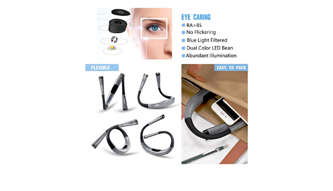 [Eye Caring & Ergonomic Design] Blue light filter and no flickering design by the advanced LED beads of the Glocusent reading light. Compared with other reading lights for books in bed, you feel no more eye strain with the Glocusent book light. The arms of the reading light around your neck are supple and adjustable so you can get the angle most comfortable for you. This around the neck reading light is ergonomically designed, it is an exceptional handsfree neck lamp for reading!