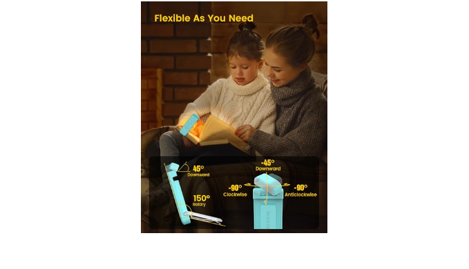 [Flexible & Portable Design] The clamp of the clip on light can open maximally 150°; the light head can be turned left, right and downside with angles of 90°, 90°, and 45° respectively. It is flexible enough for all book sizes. You can adjust the angles freely to get comfortable lighting. This book lamp is only 1.41oz(40g), much lighter than an egg. Its lightweight and small design make it have air portability or clip on books without much effort. Perfect tiny book light for traveling.
