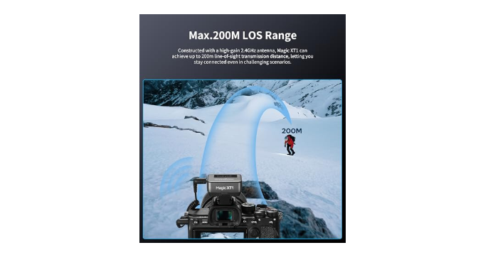 【16H Battery Life & 656ft Transmission】The transmitter provides approx. 8 hours of runtime, and the entire system powered by the RX supports up to 16 hours of recording.Constructed with a high-gain 2.4GHz antenna, Magic XT1 can achieve up to 200m line-of-sight transmission distance,making it an excellent on-the-go gear for your content creation.