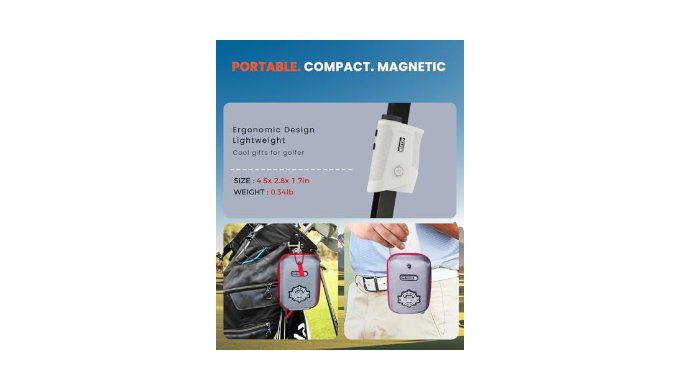 【Reliable Magnetic Mount for Easy Portability】Compact and lightweight, this golf rangefinder with magnetic mount attaches securely to metal surfaces like carts or clubs using the built-in strip. Its ergonomic design makes it easy to carry in your golf bag or pocket, ensuring it\'s always within reach. A thoughtful addition to cool gifts for golfers, combining convenience with performance.