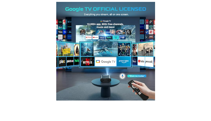 【Genuine Google TV Official License & Voice Control】: Enjoy the ultimate convenience with our tv projector that is officially licensed by Google TV. You won\\\'t need to buy any additional TV sticks, as you have instant access to all of your favorite streaming apps such as Google TV, Netflix, YouTube, Prime Video, and more! The smart projector also supports one-touch voice control, so you can open the apps and videos you want with just a word and enjoy more convenient entertainment options.