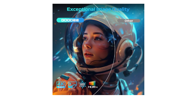 【Dual-Band WiFi 6 & Bluetooth 5.2】Enjoy ultimate convenience and flexibility with GooDee WiFi projector, equipped with dual-band WiFi and Bluetooth 5.2 functionality. The projector\\\'s WiFi 6 interface enables faster wireless rates, while Bluetooth 5.2 allows for easy connectivity to headsets and speakers. The Hi-Fi stereo speakers deliver exceptional sound quality for a cinematic experience in the comfort of your own home.