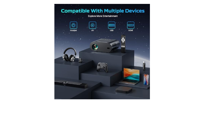 【Multiple interfaces for multiple connections】Enjoy seamless connectivity with a wide range of interfaces including HDMI, AV, USB and headphone jack that support various devices such as game boxes, TV sticks, PCs, DVD players, USB flash drives, laptops, and phones. The package comes with an IR remote, HDMI and AV cables, power cable, and lens cover. It also supports front/back/ceiling mount for maximum versatility.
