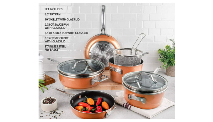 Upgrade your kitchen with the Gotham Steel™ 10-Piece Stackable Pots & Pans Set – the epitome of convenience and quality. This space-saving design ensures your kitchen stays organized while providing a versatile and durable cooking solution. The nonstick coating guarantees effortless cooking and cleaning, and the entire set is free of PFOA, PFOS, lead, and cadmium, prioritizing your health and safety. Crafted for longevity, these pots and pans are dishwasher-safe for added convenience. The set includes 3 universal tempered glass lids, 1x 8.5-inch Frying Pan, 1x 10-inch Skillet with Glass Lid, 1x 2.75-Quart Sauce Pan with Glass Lid, 1x 3.5-Quart Stock Pot with Glass Lid, 1x 5.35-Quart Stock Pot with Glass Lid, and 1x Stainless Steel Frying Basket, ensuring you have everything you need for a seamless cooking experience. Elevate your culinary adventures with the Gotham Steel™ Stackable Pots & Pans Set.