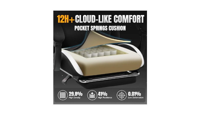 Cloud-like Comfort with Pocket Springs: Inserted the individually pocketed springs into seat cushion. Each spring flexibly adjusts based on force points, jointly enabling precise weight distribution. Wrapped with 45D high-resilience sponge outside, it ensures no collapse during long sitting and buffers vibrations subtly. The shape and support duration are 50% longer than traditional material