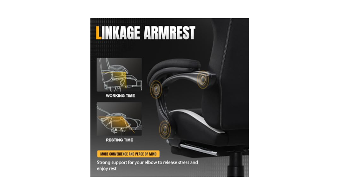 The 4-inch adjustable height, 90° - 135° recliner backrest, retractable footrest and soft cushion-linked armrests enables the gaming chair to accommodate different heights and usage preferences. When you don’t want to straighten your back and sit, just take out the footrest, put your feet up, turn on your favorite music, and start enjoying the comfort