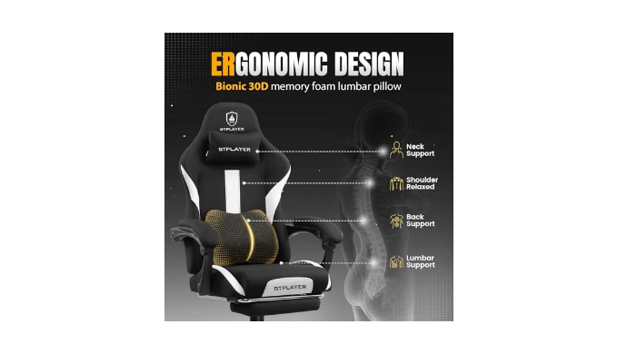 Ergonomic Design: The widened wing backrest, along with 30D one-piece molded high-density memory foam headrest and lumbar support, follows ergonomics. It precisely supports head, neck, shoulders, back, waist, buttocks and legs. It can disperse 95% of body pressure and relieve long-sitting fatigue, applicable for work, gaming or rest