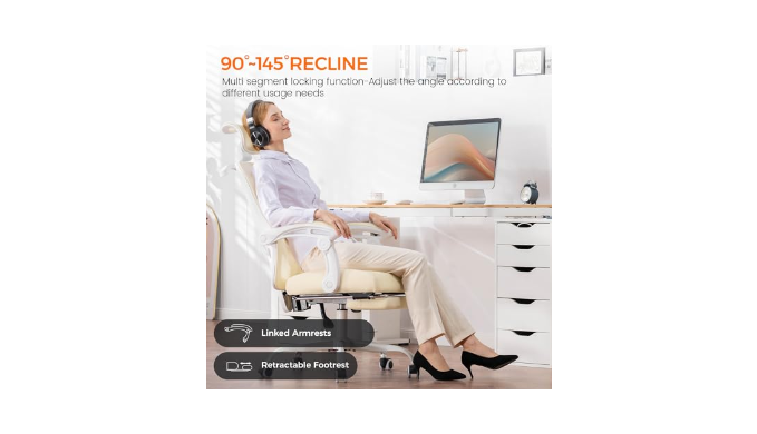 Premium Foam for Extra Comfort: Ergonomic chair features a high-resilience foam seat for comfortable support, along with linked foam-filled armrests and footrest to enhance relaxation. The breathable mesh back keeps you cool, making it perfect for long hours of work or leisure.