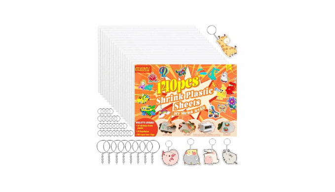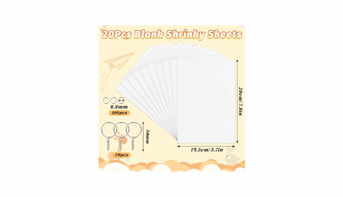 COMPLETE CRAFT KIT:Our heat shrink plastic sheet kit comes with everything you need for endless creative projects. Equipped with 20 heat shrink plastic sheets, 20 key chains and 100 open irons, this kit is a comprehensive solution for your child\'s crafts