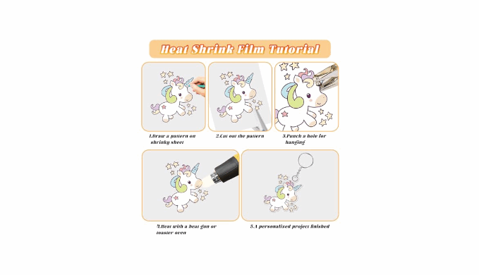 QUALITY MATERIAL: Our shrink plastic sheets for crafts are made of high quality material that shrinks evenly and maintains its vibrant color. Shrinking to approximately 20% of its original size produces a harder, thicker form that maintains its initial color and shape. The key chain and open iron ring are sturdy and durable, ensuring that your child\'s masterpiece will last