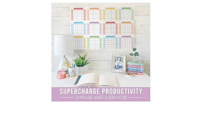 Supercharge Your Productivity; This 2024 wall calendar dry erase planner helps you crush goals in record time; Get more done in less time with our laminated wall calendar 2024 wall planner / academic wall calendar 2024-2025 large dry erase calendar for wall