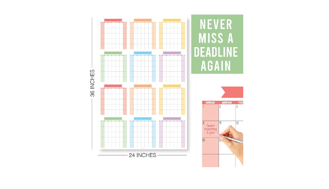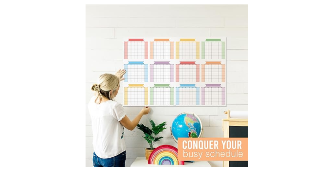 Stay Organized In Style; You\'ll receive a double-sided, extra-large 24x36 inch dry-erase yearly calendar, suitable for any 12 month period; Use as a dry erase wall calendar 2024-2025 or full year calendar 2024 one page 2024 dry erase wall calendar