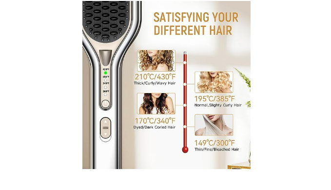 【Superior Material, Style Upgrade】The high-quality electroplated clamp gently clamp hair, providing even heat to every strand, to avoid repeated straightening of damage your hair health. our natural hair straightener & styling comb are fit for various occasions and hair styles - making your hair smoother, dociler, and more naturally compared with flat iron, and you don\'t need to worry about the straighten hair effect.