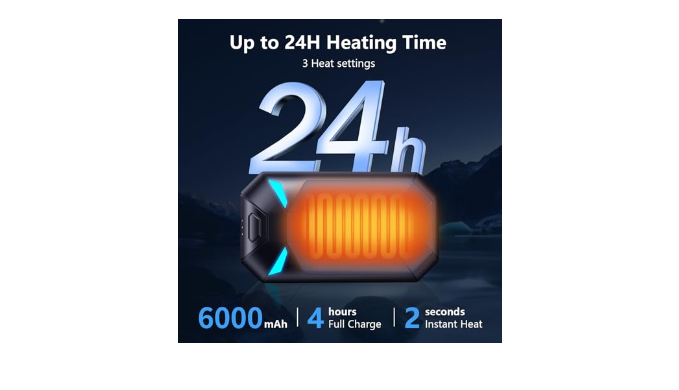 【Long-Lasting Warmth】 This electric hot hands hand warmers uses a new heating solution and battery for the longest-lasting heating effect, USB charging battery powered heater,reusable hand warmer,with a built-in 8000mAh rechargeable high-capacity battery, which allows the hand warmer to create up to 20+ hours of great heat output at 1-speed temperatures, so you can be assured of indoor and outdoor activities, such as traveling, camping, hunting, fishing, exploring, and more!