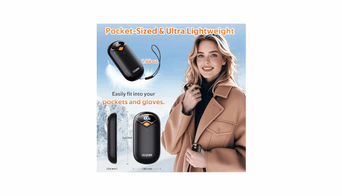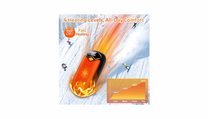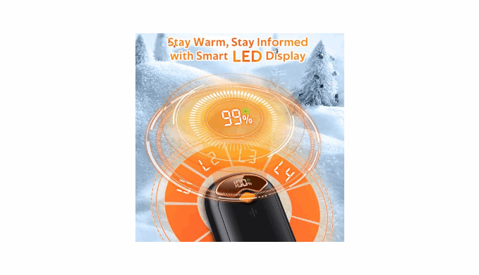 【Rechargeable Hand Warmers with LED Display】Our electric hand warmer features a clear display screen that shows the remaining battery and current temperature settings, allowing you to easily adjust the electric hand warmers rechargeable to your desired heating level by one-button control and giving you a clear indication of when to recharge it