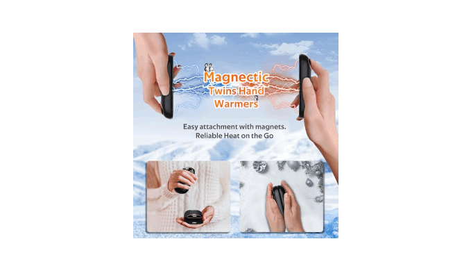 【Magnetic & Ergonomic Hand Warmers Rechargeable】 Designed with 2-in-1 split function, these rechargeable hand warmers can be used separately or snapped together magnetically for dual-sided heating and convenient storage. Strong magnets ensure the 2 pack hand warmers stay connected, reducing the chance of loss. Ergonomically contoured to fit your palm naturally, deliver gentle, even warmth to your palm and fingertips, keeping your hands cozy and comfortable during cold weather