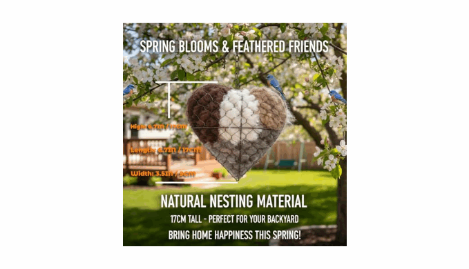 Complete Ready-to-Use Kit: This all-inclusive set features one beautiful handmade heart-shaped nesting \"haven\" and two generous bonus bags of premium nesting materials, offering birds ample resources to create a cozy home right away.