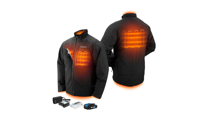 Includes: Male Heated Jacket, 1.5Ah Lithium-Ion Battery, Portable Power Source, Charger, and Operator Manual
