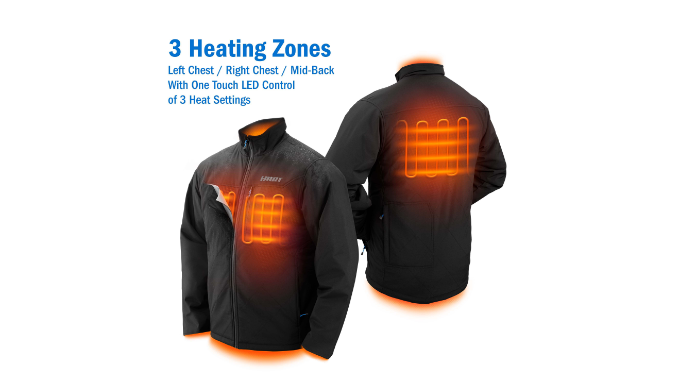 - 3 heating zones: Left chest, Right Chest, Mid-Back