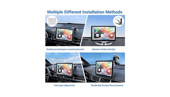 Easy Installation & Fit All Different Car: Portable carplay for car just plug and play directly with dashboard via connect cigarette lighter. No need to disassemble your car\'s console, keep your car original radio, perfect perfect for coexisting.The car play with screen is suitable for most motor vehicles, such as cars, trucks, vans, pickups and so on