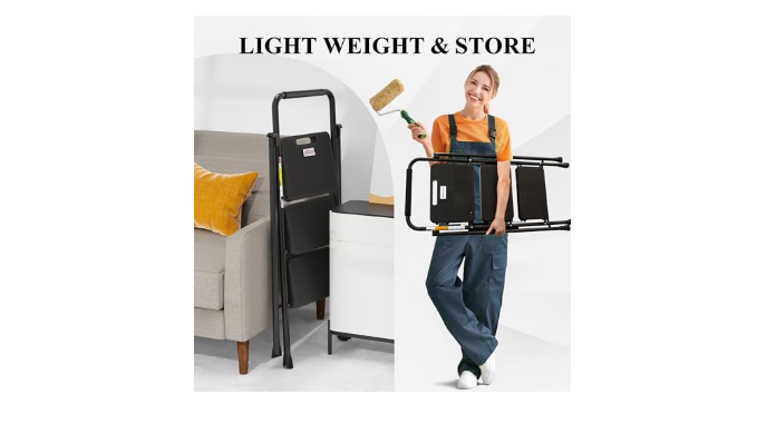 PORTABLE AND SPACE-SAVING: This Folding Step Stools Comes fully assembled!Lock and open system for easily open and fold. It folded to just 1.6\" D for storage and transportation. Easy to carry for using indoor or outdoor.