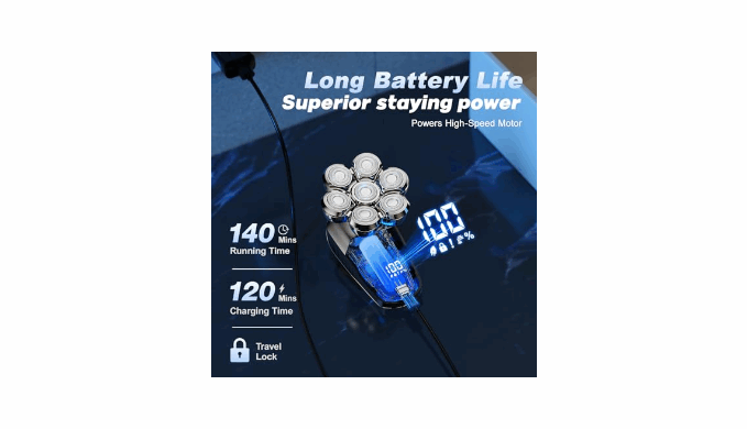 LED Display & Type-C Fast Charge: Never guess your battery status again, the LED display shows real-time power levels. The bald head shaver can be fully charged in 2hrs via power banks, cars, or laptops . The travel lock prevents accidental activation, making this electric shaver for men the ultimate travel companion.