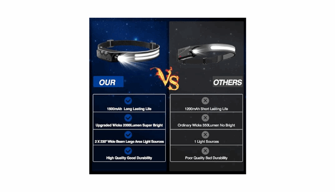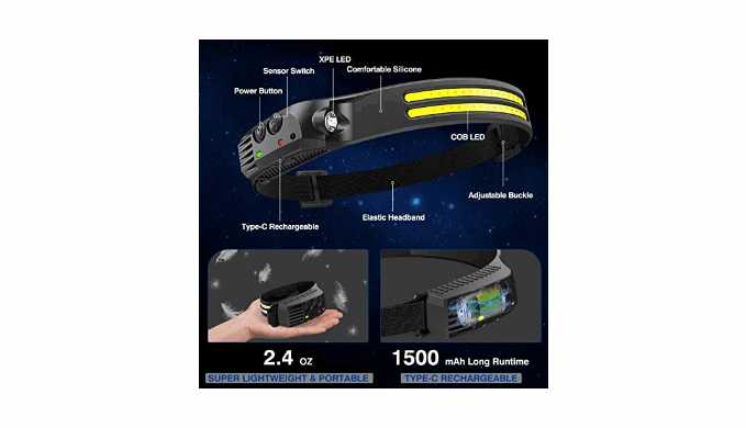 5X BRIGHTER THAN OTHER HEADLAMPS WITH MOTION SENSOR MODE: When Darkness Settles In, Count On Our Headlamp To Cut Through It With 2000 Lumens.The Headlamp Has A Maximum Brightness Of 2000 Lumens And Illumination Range Of 100-300 M²,The Built-In 1500mah Battery Can Last For 3-8 Hours After Being Fully Charged.In Sensor Mode, The Headlamp Automatically Turns On When The Objects Come Close To You. You Could Control It By Waving Your Hand In Front Of Other Objects.