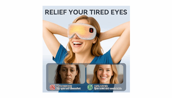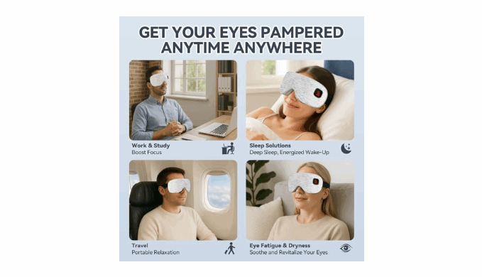 【Rapid & Even Heating】Features upgraded metal fiber heating material for quick, uniform warmth. Effectively boosts blood circulation around the eyes, relieves fatigue and discomfort, and improves sleep quality. Ideal for those working late, traveling long distances, studying intensely, suffering from insomnia, or experiencing eye discomfort.