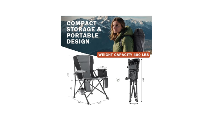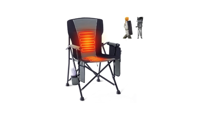 【Foldable & Portable Heated Camping Chair】Our heavy-duty heated outdoor chair has a foldable design that measures 36.4 x 9.5 inches after folded and weighs just 10.8 pounds. It is easy to carry with including carrying bag and does not take up much storage space, making it perfect for outdoor and indoor activities such as camping, hunting, fishing, concerts, traveling, hiking, sport games, or just relaxing in the yard.