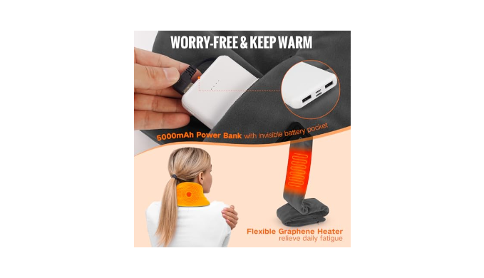 CORDLESS & PORTABLE: This neck heating pad comes with 5000mAh power bank that placed our designed pockets. No more tangled wires to worry about. Stay warm anywhere, lightweight design for maximum comfort and relaxation.